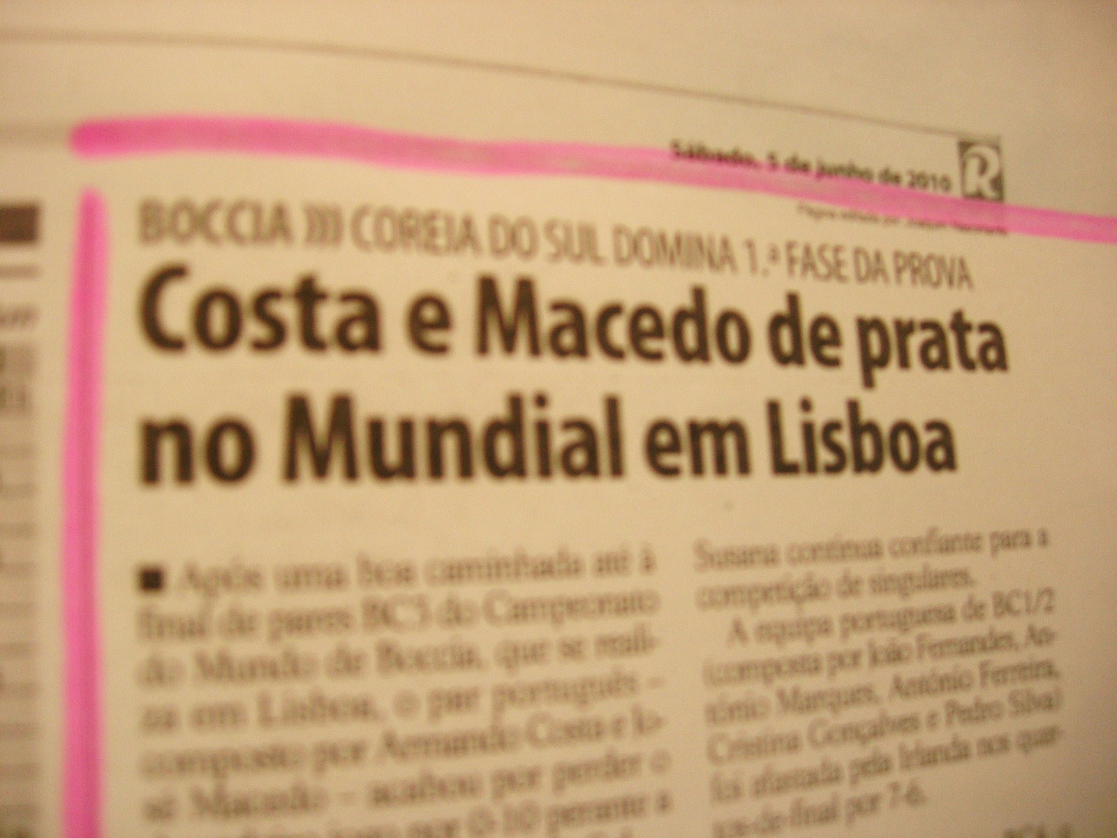 BOCCIA: CAMPEONATO DO MUNDO – PORTUGAL NOS QUARTOS DE FINAL DE BC3 E BC4 Lusa.pt, 04-06-2010 http://clipping.imago.pt/online25/resultado_mail.asp?codf=14&l=1&idnoticia=991143