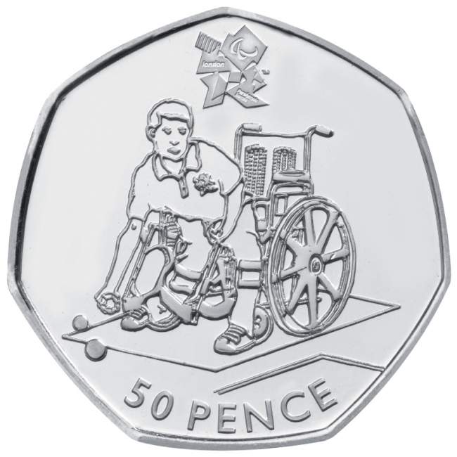 Moeda de 50 p comemorativa dos Jogos Paralímpicos de Londres 2012, com logotipo do Boccia, já disponível para coleccionar.