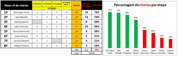 A discussão da vitória na prova esteve bastante acesa até ao início da 4ª jornada entre Domingos Vieira e José Carlos Macedo. No entanto, José Carlos Macedo não conseguiu superar a fase de grupos ao ter sido derrotado por Domingos Vieira e José Gonçalves o que o relegou para a luta pela 5ª posição da geral da respetiva jornada. Este facto foi decisivo e abriu caminho para que Domingos Vieira pudesse tornar-se campeão da prova.