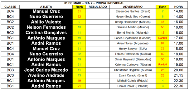 Tarefas muito difíceis para Manuel Cruz (contra Eliseu dos Santos), Nuno Guerreiro (contra Hyeon-Seok Seo), António Marques (contra Mikhail Gutnik) e André Ramos (contra Daniel Perez), a defrontarem adversários de muito valor.
