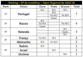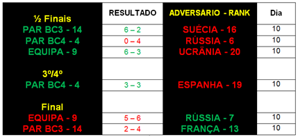 O Par BC3 e a Equipa alcançam a medalha de prata e o Par BC4 a medalha de bronze.