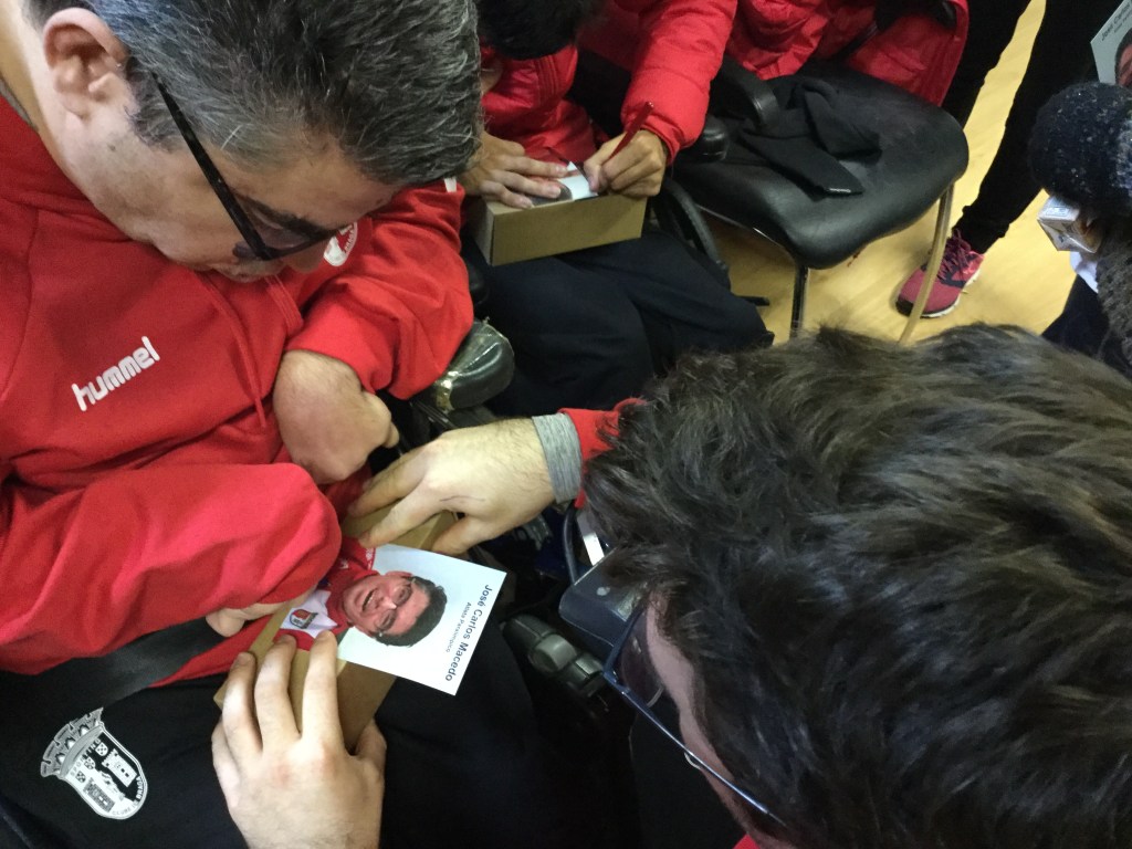 Para finalizar em grande, e após um óptimo café da manhã, a delegação da secção de Boccia seguiu para o auditório para tomar parte na tertúlia “Ler o Desporto”, onde os alunos apresentaram os atletas do SC Braga e o seu historial na modalidade.
