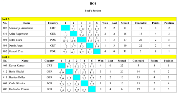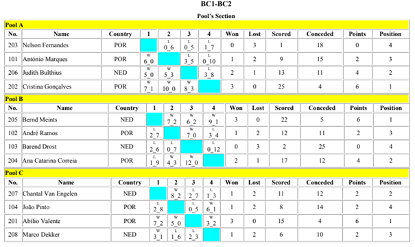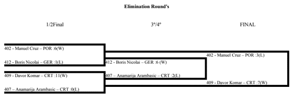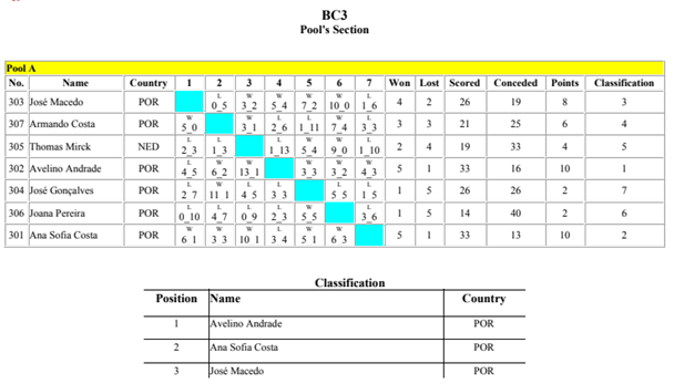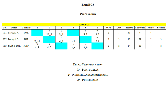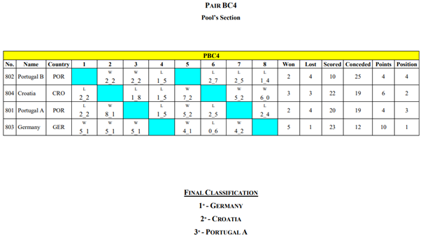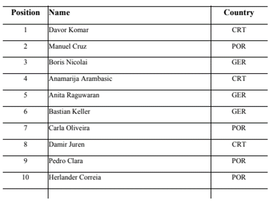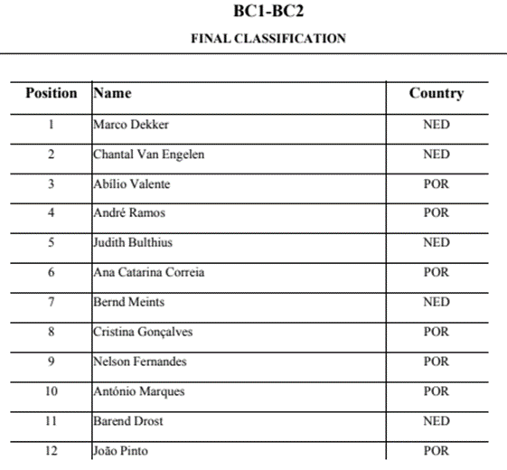 Das provas realizadas nas várias divisões individuais e coletivas, os resultados foram os seguintes:
