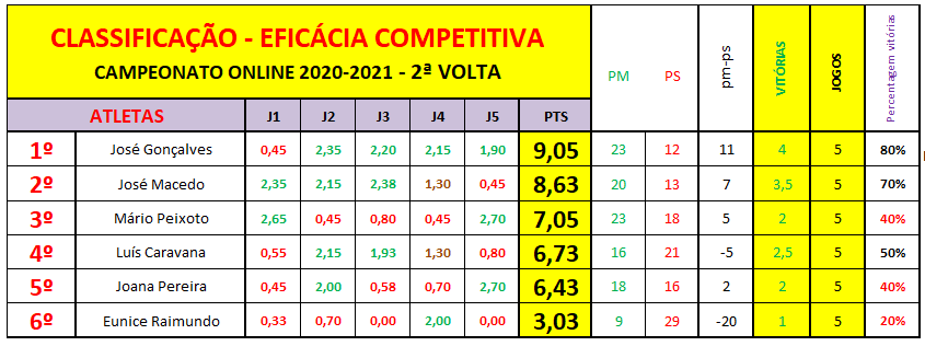 José Abílio Gonçalves, o vencedor do I Torneio Online, iniciou a prova com 3 derrotas e 1 empate na primeira volta o que limitou muito a disputa pela renovação da vitória conseguida na edição anterior. No início da segunda volta voltou a perder mais um jogo o que parecia não ser o ano para lutar pelo topo. Porém, a partir deste novo desaire vence oito jogos seguidos, somente perdendo o último, decisivo, frente a José Carlos Macedo e que ditou a sorte final na classificação. Apesar de ter sido o vencedor da 2ª e da 3ª voltas, tal não foi suficiente para recuperar da má 1ª volta. Mesmo assim, se tivesse vencido o último jogo, perante, José Carlos Macedo, seria novamente o vencedor da prova.