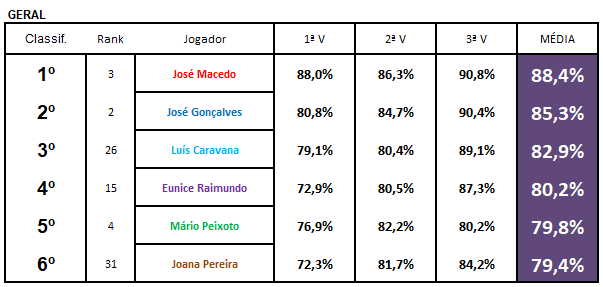 A luta foi muito renhida, especialmente em relação aos três jogadores colocados nas primeiras posições.