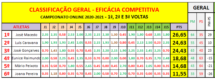 Digno de realce é a evolução operada por todos os atletas, mas com especial significância para José Abílio Gonçalves e Luís Caravana (+10%), para Joana Pereira (+12%) e para Eunice Raimundo (+15%).