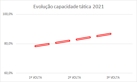 Foi superado o valor de capacidade tática do grupo de referência, o qual tinha sido avaliado previamente em 84%. O grupo SCB terminou a prova com a média final de 87% na última volta, superando em 9% o seu valor de partida (78%).