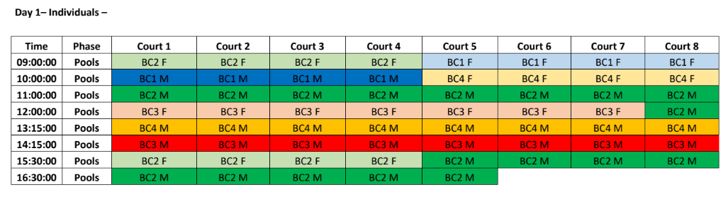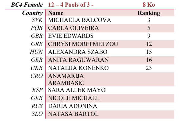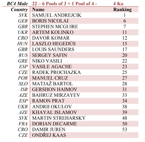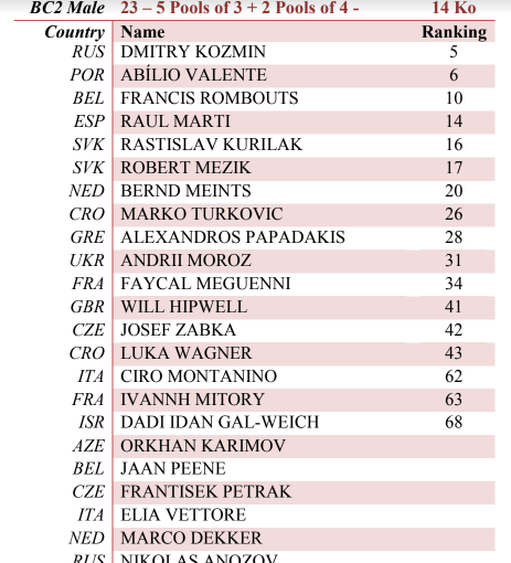 Acompanhado pelo seu parceiro de competição, Paulo Correia, José Abílio Gonçalves venceu o primeiro jogo do seu grupo perante o atleta eslovaco Adam Burianek por 4-2.