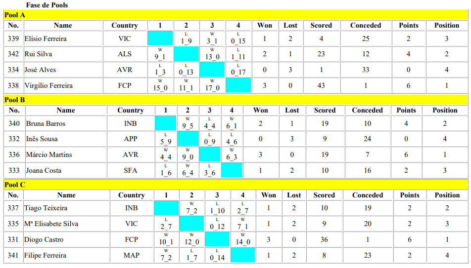 Esta foi uma prova muito competitiva, com jogos extremamente equilibrados e difíceis, tornando esta divisão um verdadeiro desafio a todos os atletas.