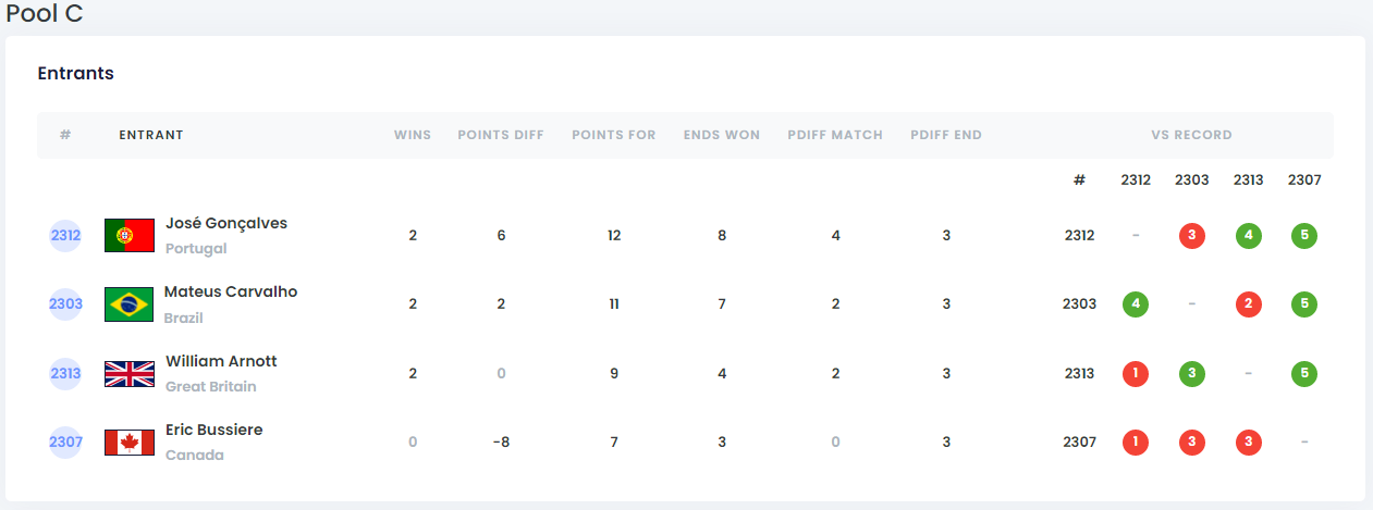 Tendo que vencer o britânico William Arnott (38º ranking mundial), no terceiro e último jogo do grupo, José Abílio Gonçalves venceu por 4-1. De realçar qua antes deste último jogo, o atleta britânico, uma esperança do Boccia inglês, contava com duas vitórias, estando em posição privilegiada para passar aos 1/4 de final. Com a derrota perante o atleta luso, e a vitória do campeão americano (Mateus Carvalho) perante o atleta canadiano, estes 3 jogadores ficaram empatados na primeira posição, com duas vitórias cada um, sendo que no desempate pelo critério da melhor diferença entre pontos marcados e pontos sofridos, José Abílio Gonçalves venceu o grupo e apurou-se para os 1/4 de final. Na segunda posição ficou o brasileiro Mateus Carvalho, que deste modo também se apura para a fase seguinte da prova.