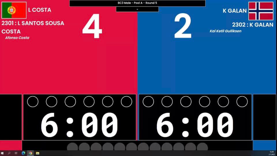 Na prova BC1, Francisco Gouveia venceu o grupo de apuramento, onde somente obteve dificuldades perante o italiano Riccardo Zanela, em jogo que teve de ser decidido por parcial de desempate. Na 1/2 final ultrapassou o francês Ridouane Messaoudi, e na final a israelita Nikita Prokopenko.