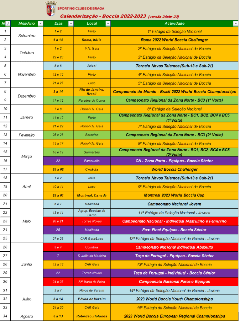 Os atletas do Sporting Clube de Braga, José Abílio Gonçalves, acompanhado por Paulo Correia, e Domingos Vieira, acompanhado por José Teixeira, participam entre 24 e 30 de abril na Taça do Mundo de Boccia, que se realiza na Arena Maurice-Richard, em Montreal (Canadá).