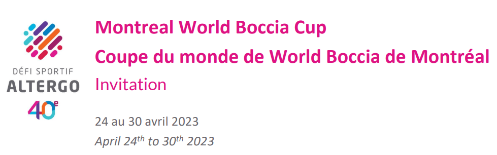 Os atletas do Sporting Clube de Braga, José Abílio Gonçalves, acompanhado por Paulo Correia, e Domingos Vieira, acompanhado por José Teixeira, participam entre 24 e 30 de abril na Taça do Mundo de Boccia, que se realiza na Arena Maurice-Richard, em Montreal (Canadá).