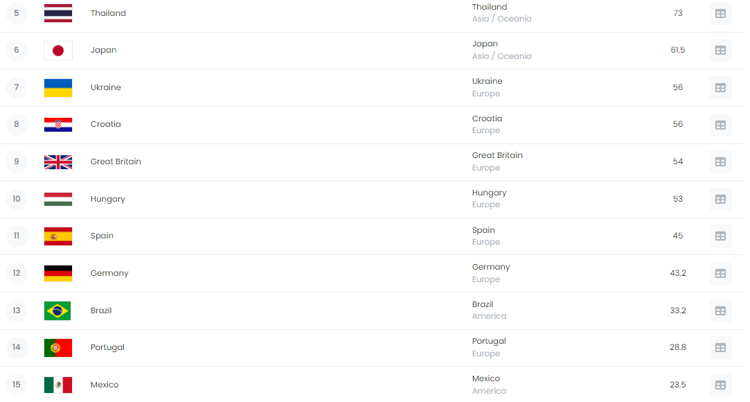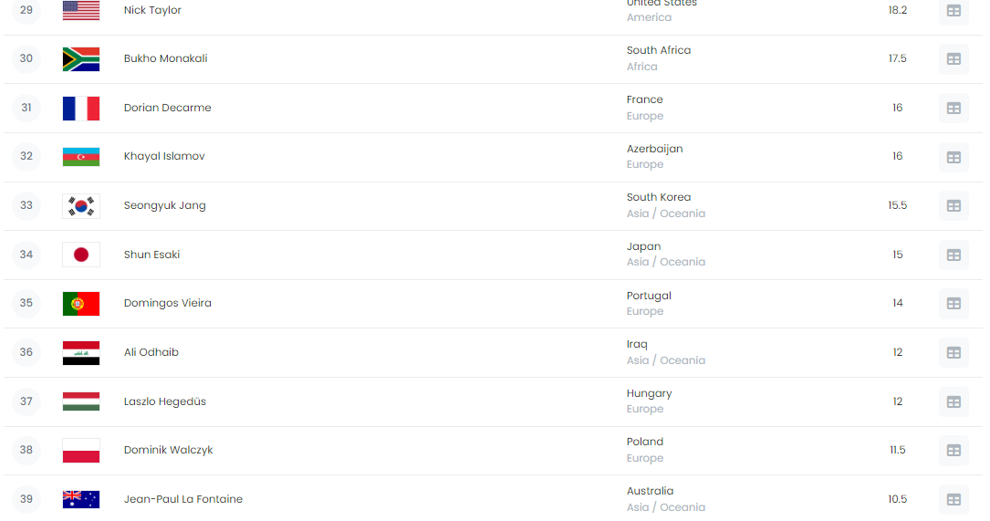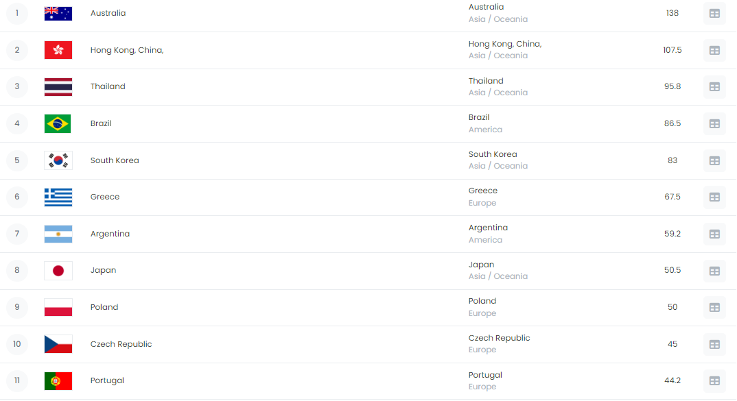 Em termos de Pares, Portugal, com o contributo de José Gonçalves, ocupa a 11ª posição mundial, entre 34 países, e a 4ª posição na Europa, atrás da Grécia, Polónia e Rep. Checa.