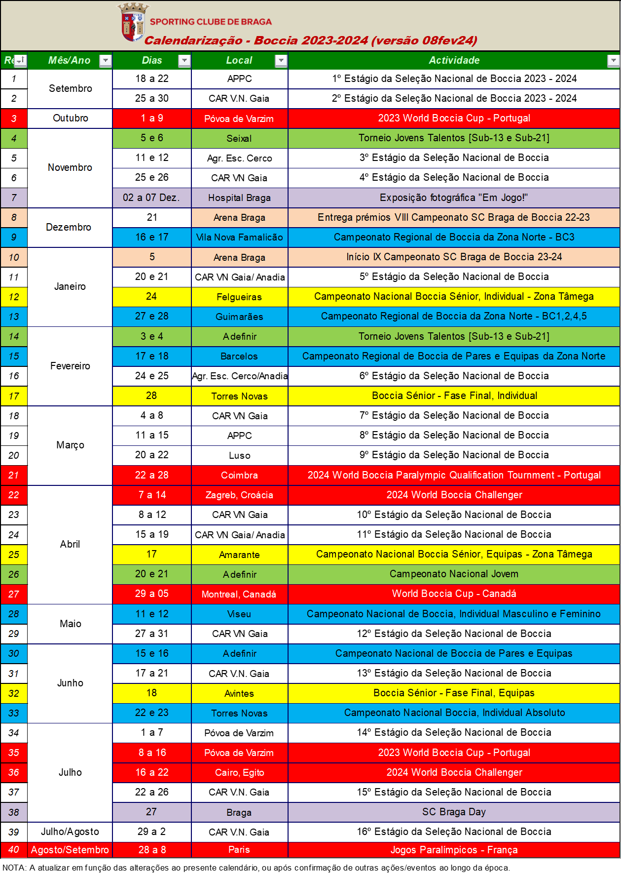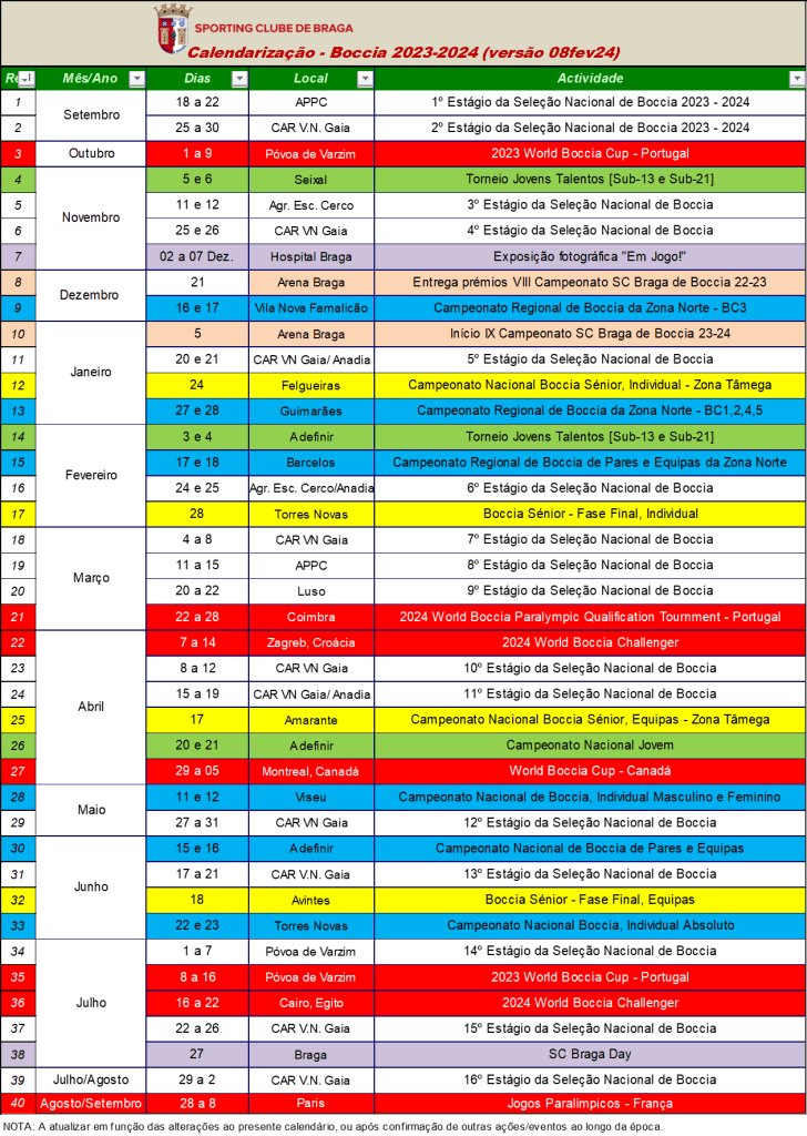 Três atletas do Sporting Clube de Braga e os seus acompanhantes técnicos, foram convocados para o 6º estágio da seleção nacional de Boccia, a decorrer nos dias 24 e 25 de fevereiro, na Escola Básica e Secundária do Cerco, no Porto.