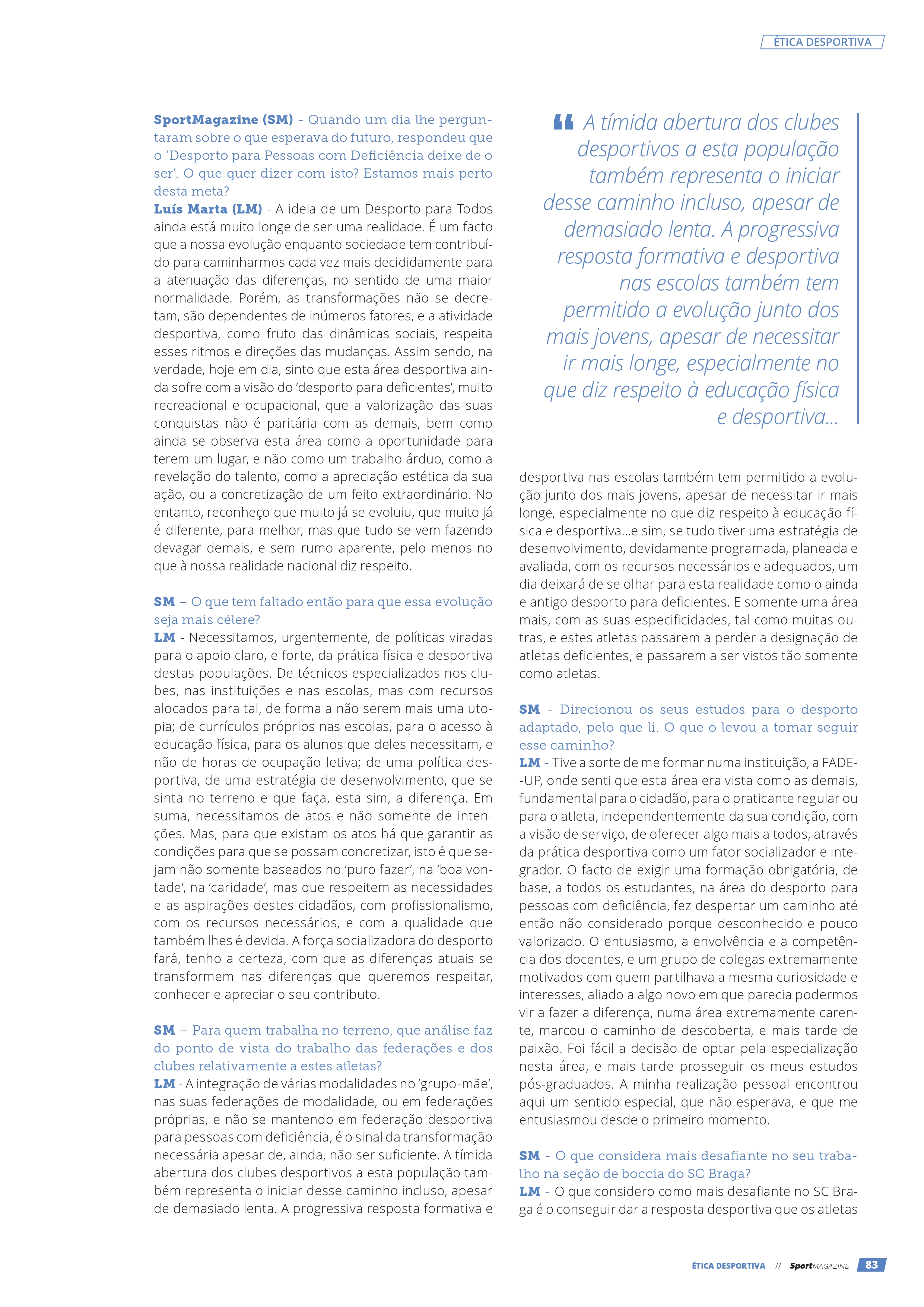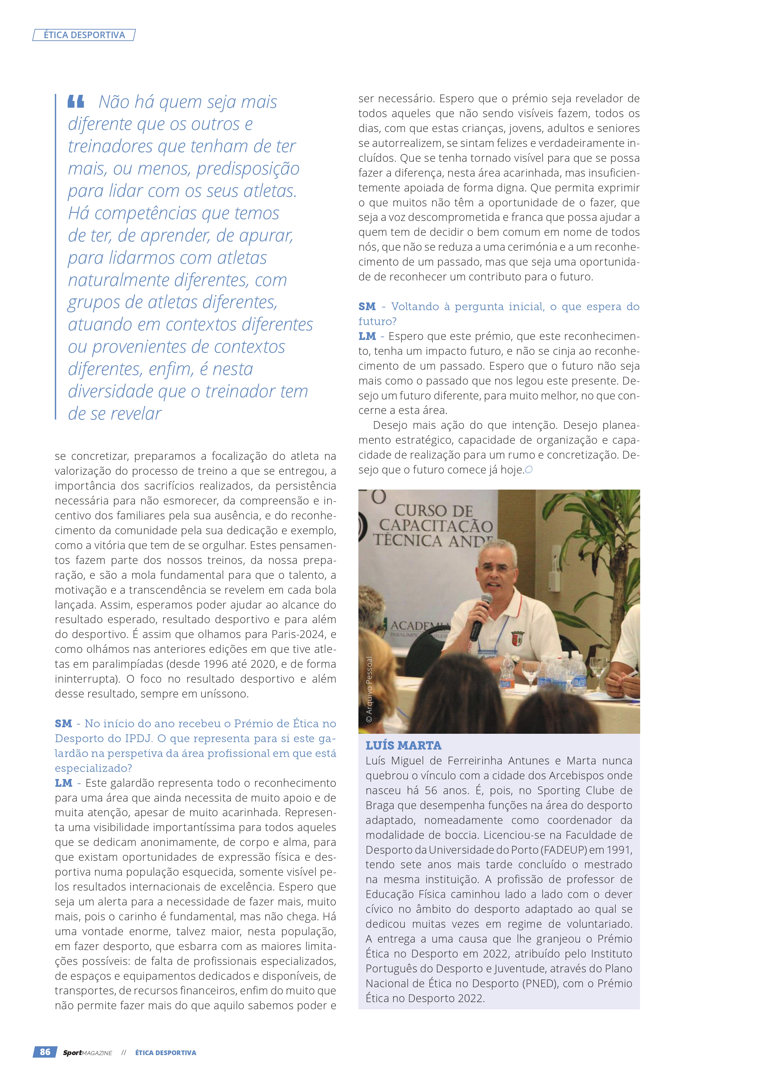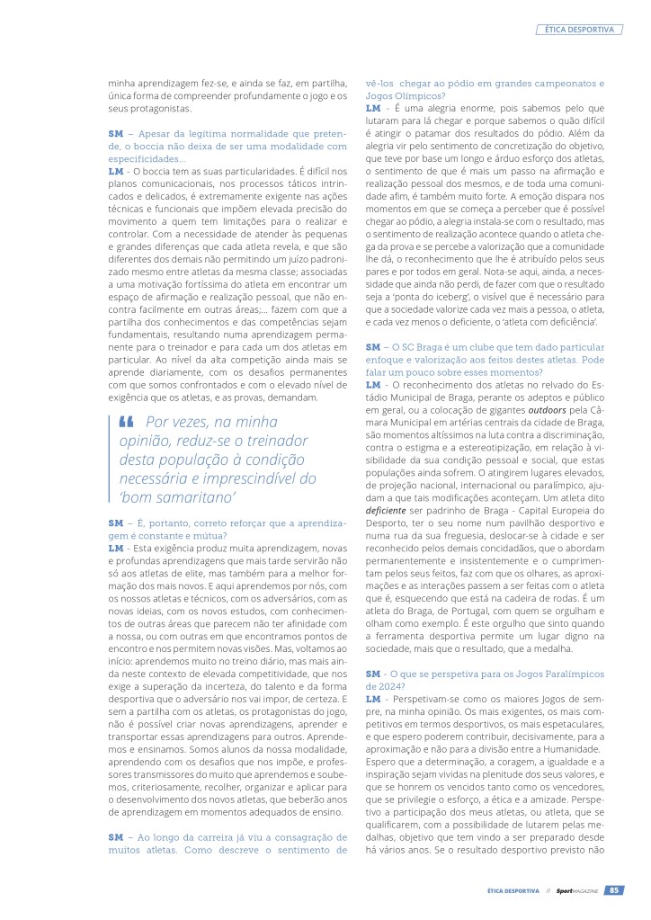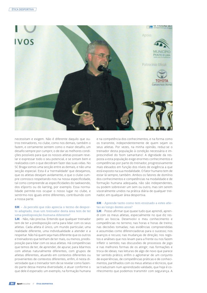Luís Marta em entrevista à SportMagazine, por motivo da atribuição do Prémio Nacional “Ética no Desporto 2022”, pelo IPDJ 26/02/202426/02/2024 / Boccia Braga Classifique isto:Partilhar isto:Partilhar Clique para partilhar no Facebook (Abre numa nova janela) Facebook Carregue aqui para enviar por email a um amigo (Abre numa nova janela) E-mail Clique para partilhar no WhatsApp (Abre numa nova janela) WhatsApp Gosto Carregando... Relacionado