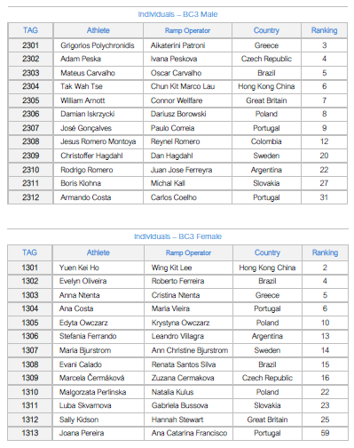 O Sporting Clube de Braga contará com o seu atleta já qualificado para a estreia nos Jogos Paralímpicos, José Abílio Gonçalves, acompanhado por Paulo Correia, e ainda com Joana Pereira, acompanhada por Ana Catarina Francisco, que competirão na classe BC3.