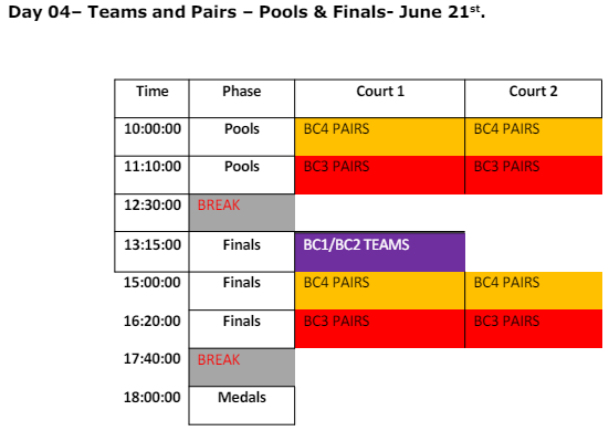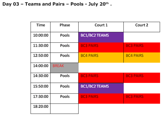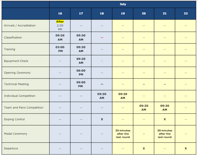 A prova individual inicia-se a 18 de julho e a prova de pares no dia 20 de julho.