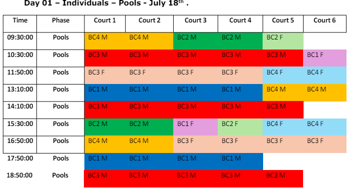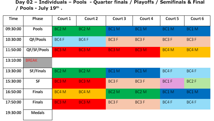 A prova individual inicia-se a 18 de julho e a prova de pares no dia 20 de julho.