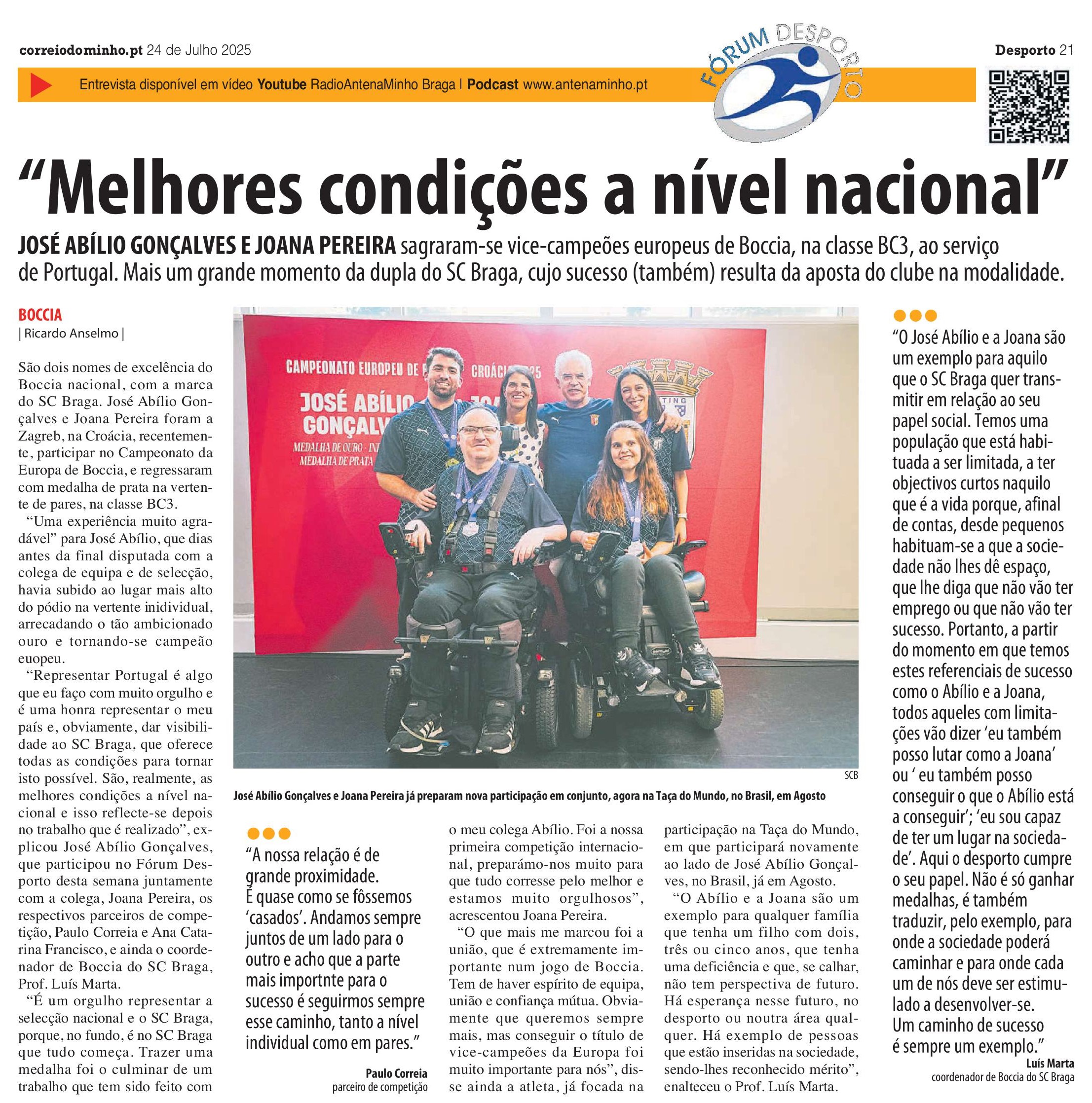 Até 2023 continua a acompanhar a secção de Boccia do Sporting Clube de Braga, da qual foi cofundador em 2008.