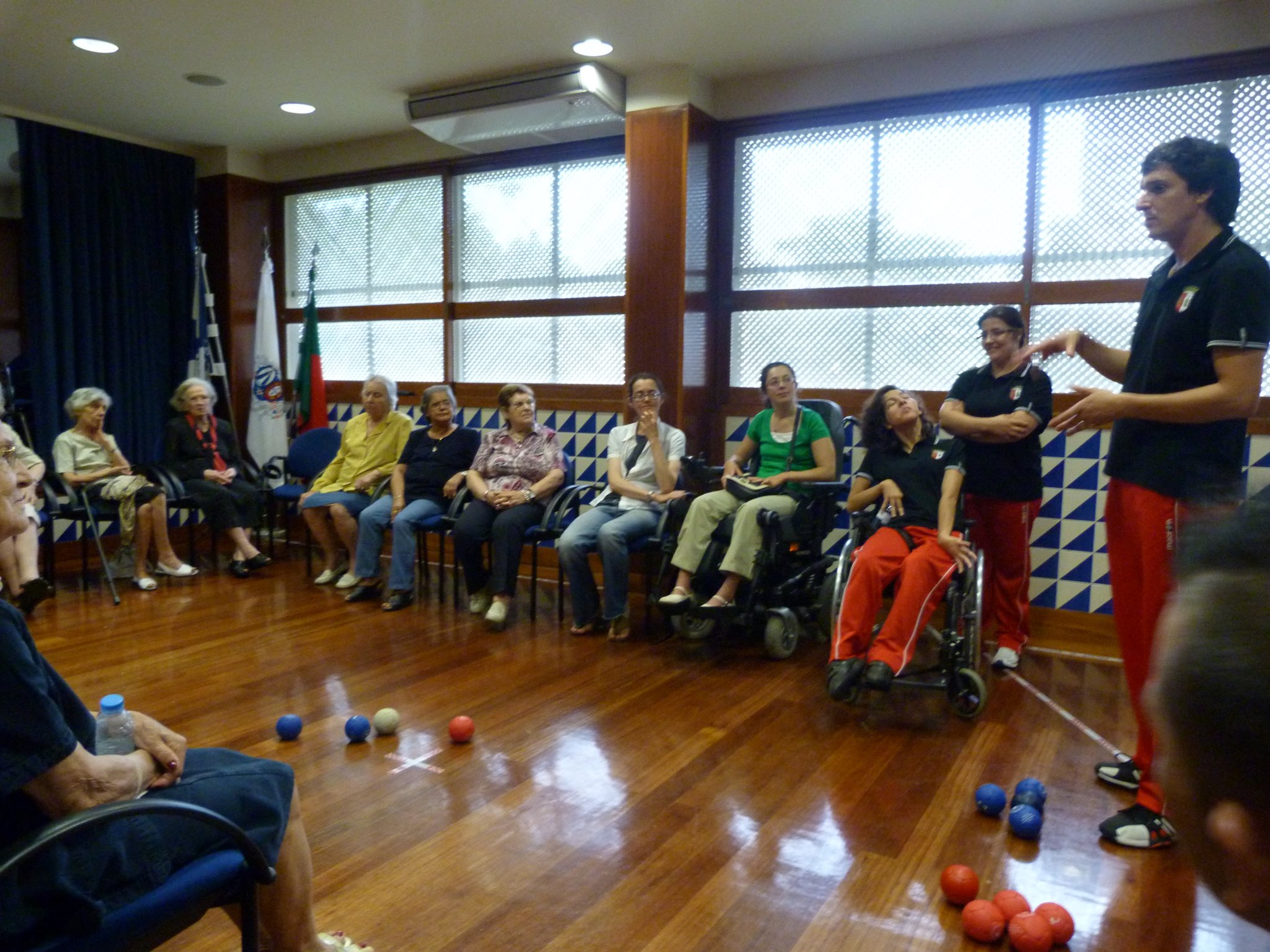 Para a explicação teórica sobre o Boccia, suas variantes, seus praticantes e regras básicas, os Técnicos da SDA do S.C. de Braga, Professores André Soares e Luís Marta foram cuidadosos e muito claros na apresentação que fizeram, recorrendo-se ao interessante visionamento de imagens da participação de Atletas portuguesas em Provas Internacionais, para melhor se perceberem as regras deste jogo que tem influências do jogo tradicional, petanca, oriunda das civilizações gregas e romanas e que se tornou uma modalidade Paralímpica em 1984, nos jogos de Nova Iorque.