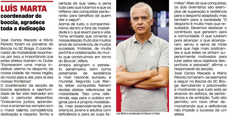 A secção de Boccia reproduz neste artigo o testemunho que deram ao Clube e à região, na entrevista realizada para o Suplemento do SCB do Jornal Correio do Minho, em 21 de outubro de 2022.
